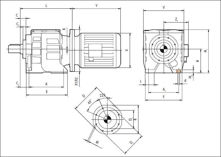 Цилиндрические соосные мотор-редукторы VARVEL (Варвел) серии MRD 02, MRD 12, MRD 22, MRD 32, MRD 42, MRD 52, MRD 62, MRD 03, MRD 13, MRD 23, MRD 33, MRD 43, MRD 53, MRD 63