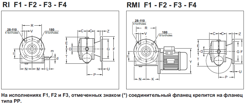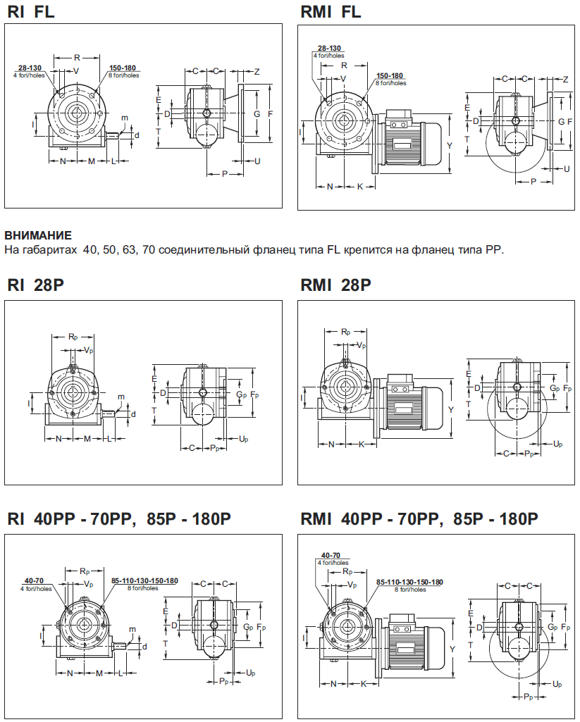 Одноступенчатые червячные мотор-редукторы STM (СТМ) серии RMI 28, RMI40, RMI 50, RMI 63, RMI 70, RMI 85, RMI 110, RMI 150, RMI 180